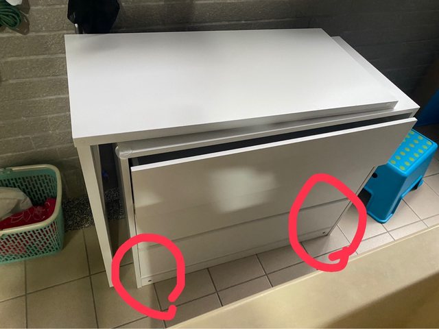 可參考圖片,最底下腳踢板的位置裝反,介意者可以自行改回或是拿貼紙蓋住。