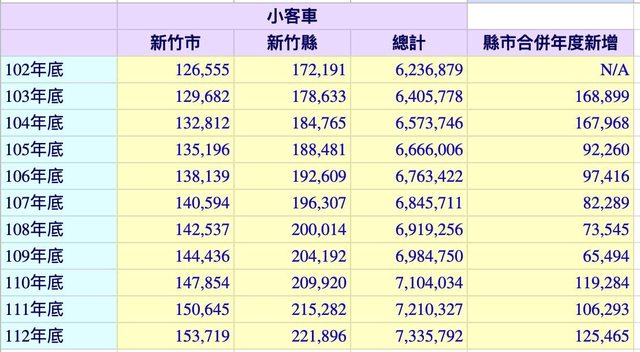 我修了一下表格 多了一欄年度新增 可以比較好觀察年度變化