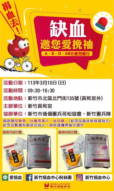 新竹難得有捐血送禮券的活動