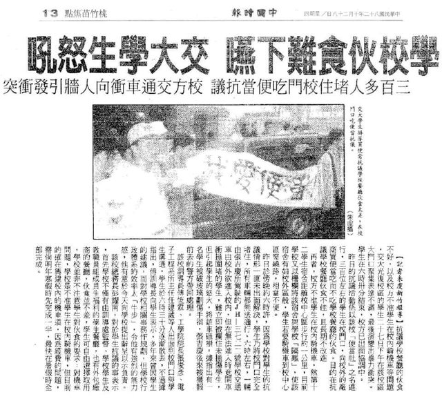 : : 學生不准進交大,因此 1993 年爆發了好幾次學生暴動事件,最終結果就是