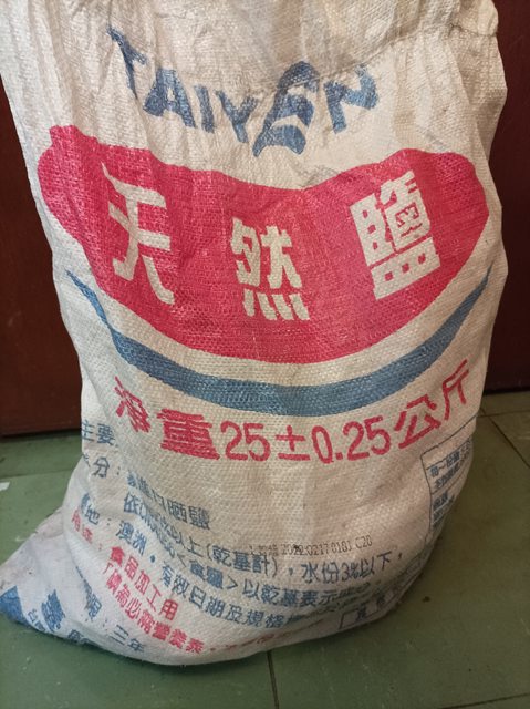 物品項目:過期25公斤鹽巴,不可食用,部分有結塊現象