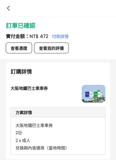 標題[讓售] 大阪地鐵巴士乘車券 2日券