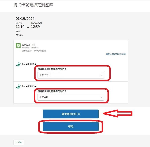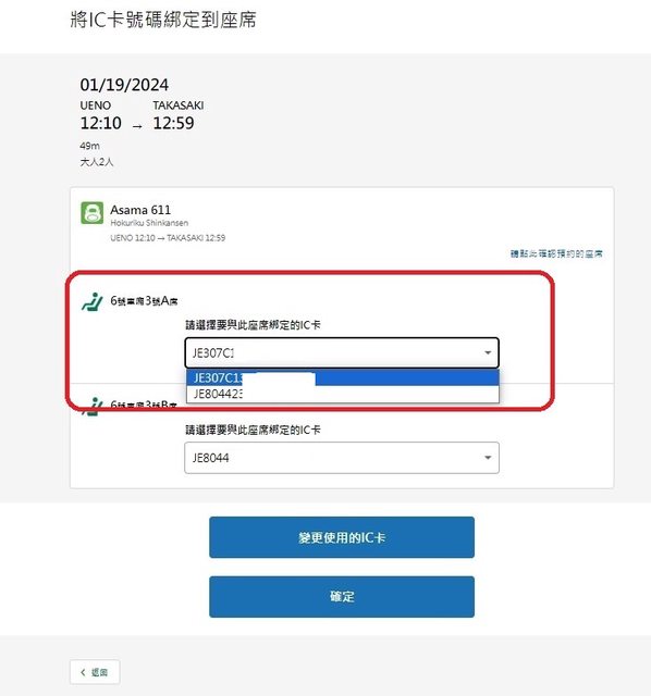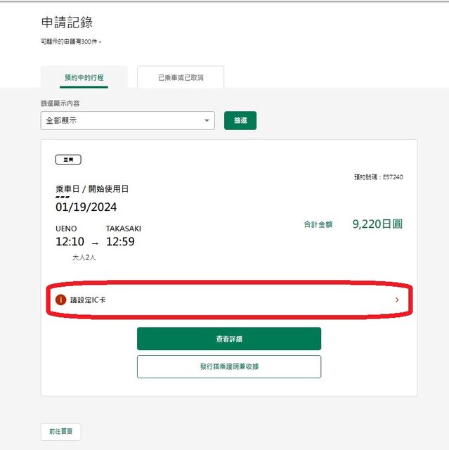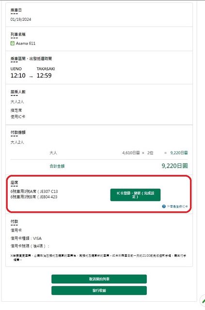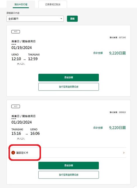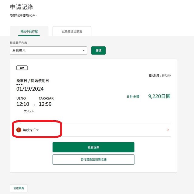 在已登錄IC卡狀態,訂新幹線車票
