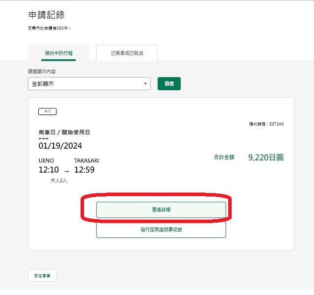 或是購票後點選從「會員資訊」-「確認/取消預約」-預約中的行程