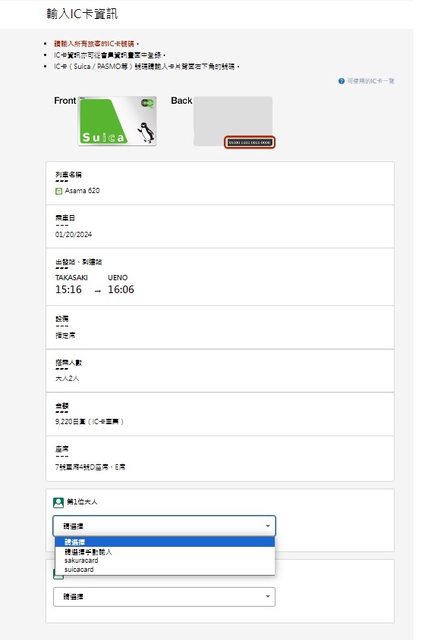 2.可以在會員資訊先登錄1張以上SUICA,或是先購票後綁定,