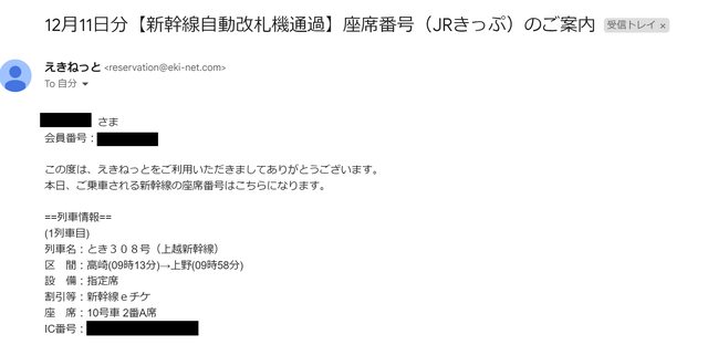 1.可以設定E-mail,當通過新幹線札口時,寄信給購票者,並顯示車次及座位