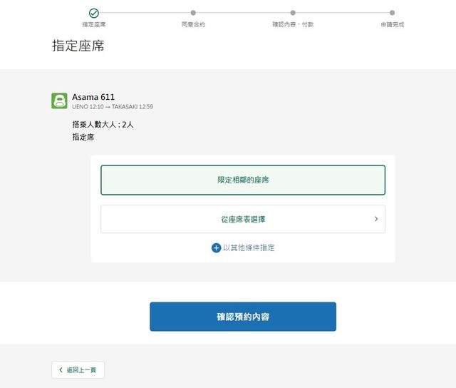設定座位:普通車指定席