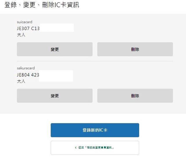 (若是按「變更使用的IC卡」就清除先前輸入資料全部重來)