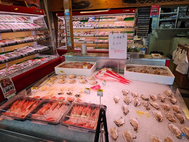 生蠔一個500日圓,赤蝦一條150-200日圓