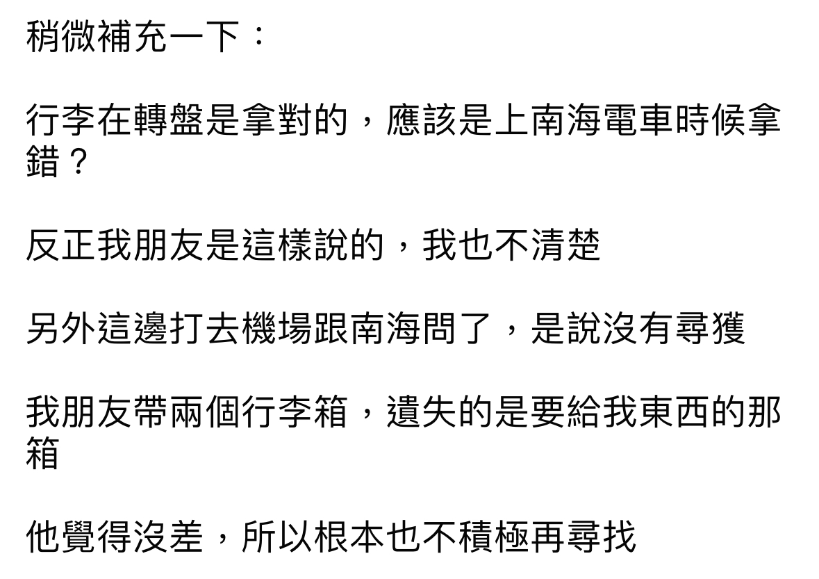 → wwl0909 : 拿錯的行李後續怎麼處理完全不提 12/30 11:03