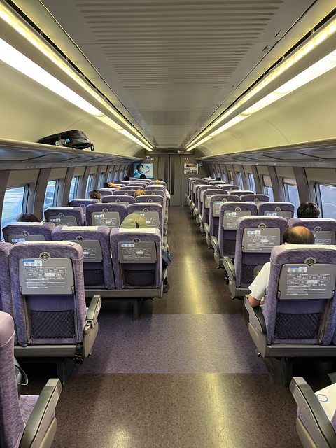 自由席採取的是傳統的3-2配置。在指定席加價不多的情況下,選擇「類綠色車廂」的2-2