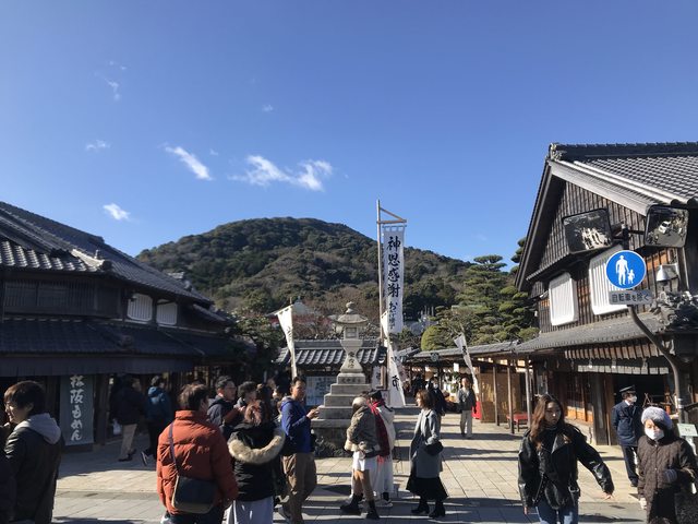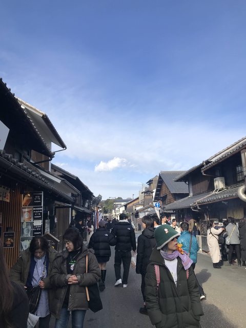 這一天禮拜六怕太晚出門人潮太多,所以一早就出門,快八點就到伊勢市了。出站後往前