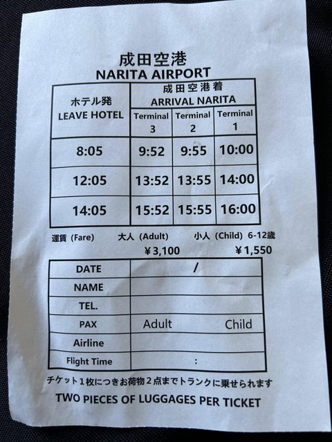 這張圖是昨天回飯店看到的,飯店恢復了利木津往返成田機場的巴士,應該是2024 1/1恢復
