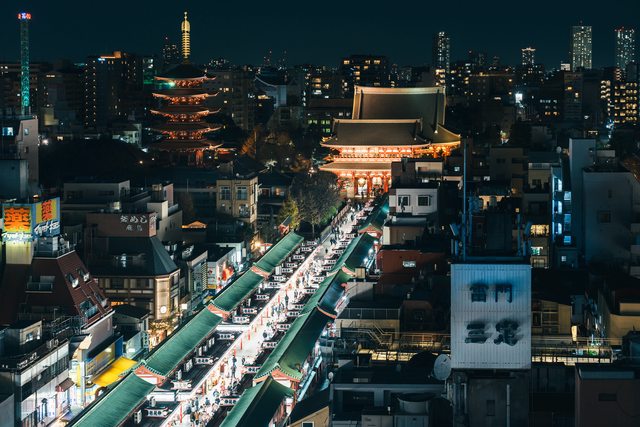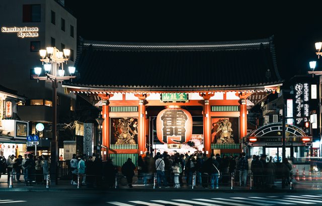 吃完泥鰍鍋以後,就順路到晚上的淺草附近拍照