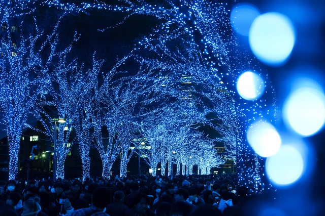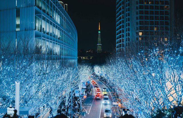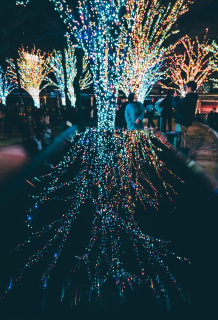 整個六本木大樓的區域樹木都變得五光十色的