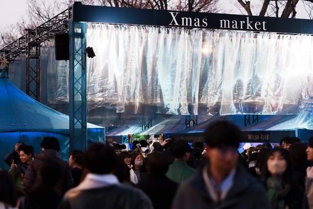 在點燈前,人潮慢慢聚集起來,這裡也有聖誕市集可以逛