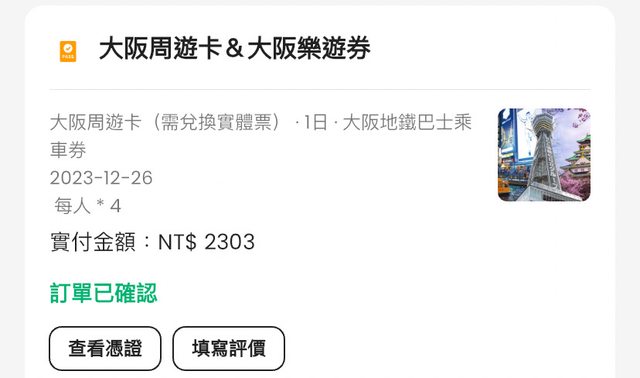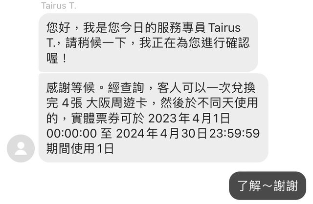 1. 讓售品項:大阪周遊卡一日券(附贈地鐵巴士一日乘車券)