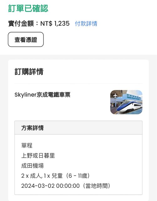 因為行程大改不需要搭京成去機場,但Klook不能退票,如果有需要請站內信