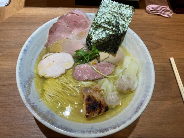 餐點品項:塩らぁめん+味玉 , 白トリュフオイル香る鶏白湯麺