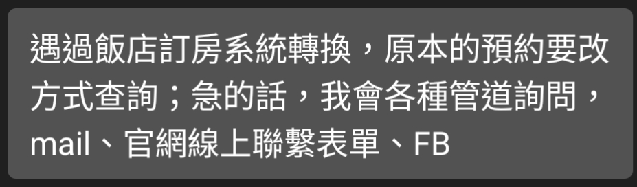推 kuchti : 我也遇過 因飯店換系統 但官網有公告 01/09 18:44