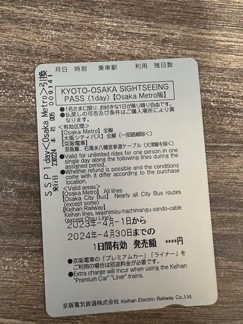 1. 讓售品項:京都大阪觀光(京阪電車)一日卷 大阪地鐵版
