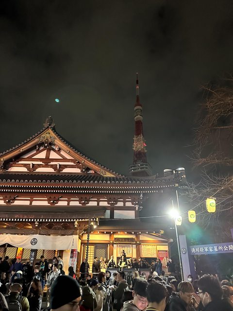 先是去東京鐵塔腳下的增上寺跨年倒數,人擠到爆幾乎都是洋人跟外國人