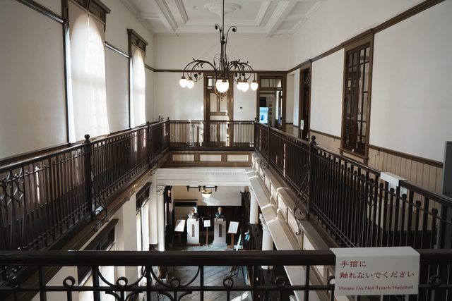 舊唐津銀行共開放兩層,一樓保留銀行窗口,二樓則介紹辰野金吾的生平與作品