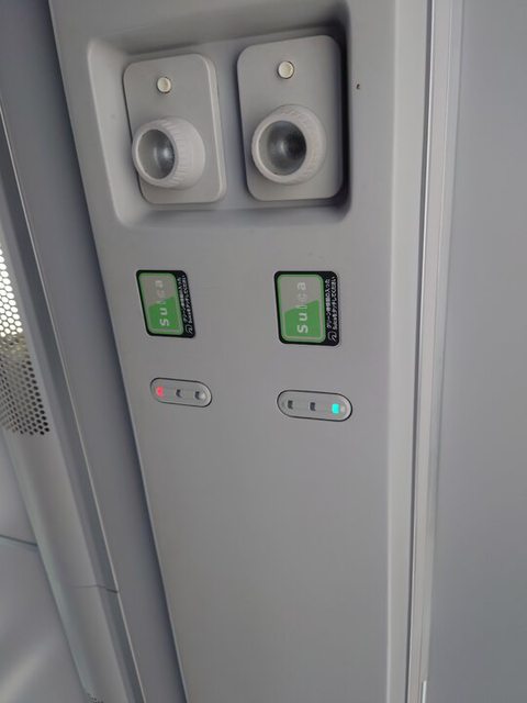 直接找同車頭頂上是〝紅燈〞的座位坐,逼頭頂的suica圖案,讓其變綠燈即可