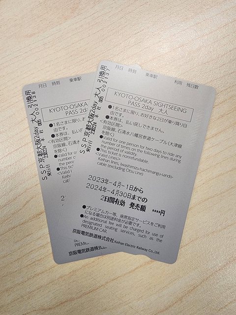 (已售出)京阪電車京都大阪觀光二日券實體卡,2張500。共有4張。