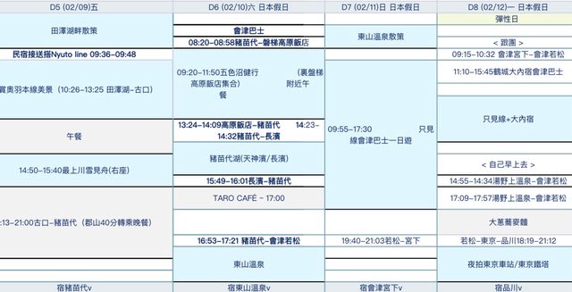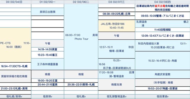 3. 預計2/4-2/7使用北海道周遊券(美瑛富良野),2/8~2/12使用東北JR Pass,2/13以