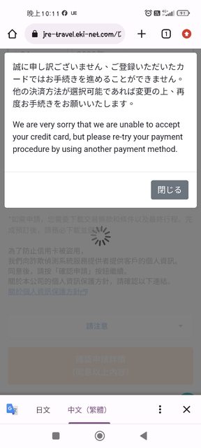 → besthsnu : 前陣子在jr東網站也是試了5.6家不同銀行的卡才刷過01/19 13:49