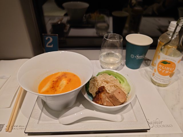 回程享用了担担麵和柑橘汽水 在火車上看到有人在現場調理的感覺真的很特別