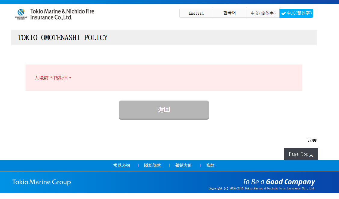 會顯示 入境前不能投保。