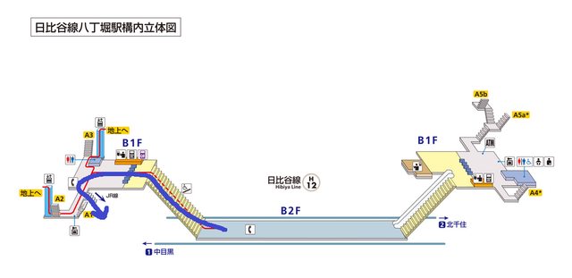 C:從《上野御徒町》搭[都營大江戶線]到《月島》,轉[有樂町線]到