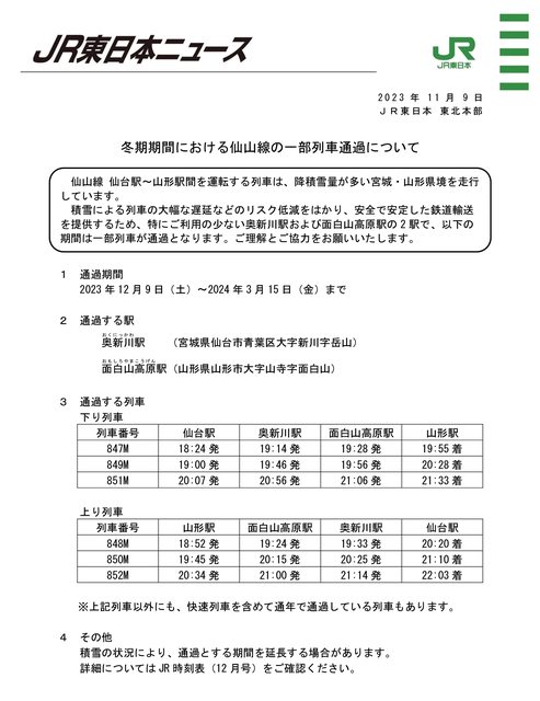 → finzaghi : 如果是仙台山形往返 我會建議搭巴士 比較快 01/26 20:12
