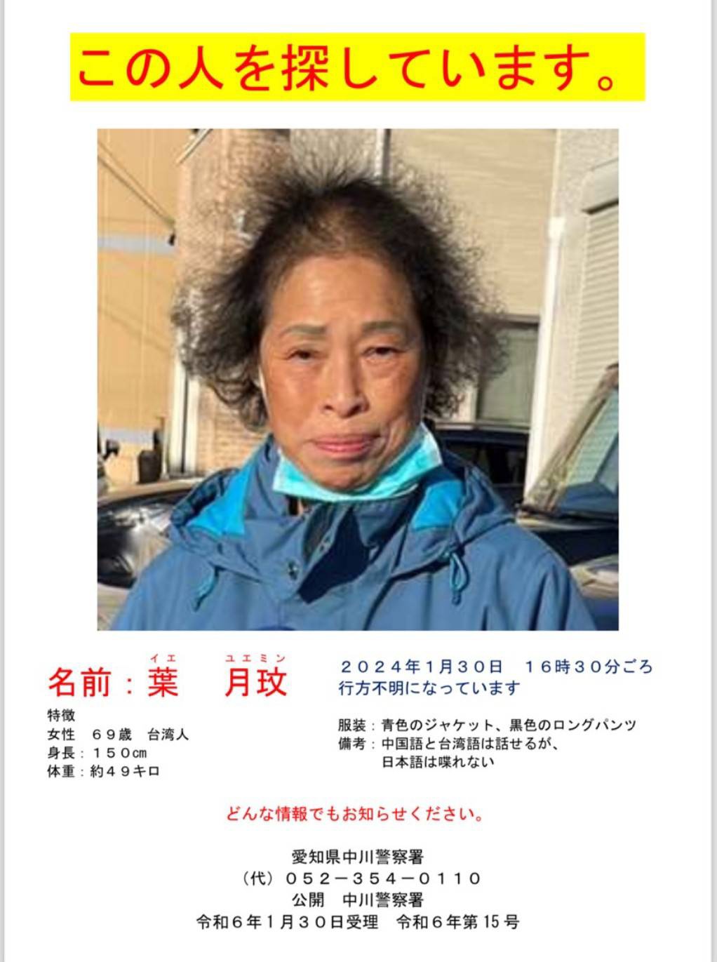 推 amuroglobe : 幫高調~希望阿姨能早日平安回到家人身邊 01/31 22:38