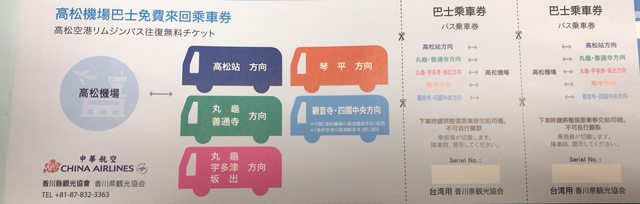 共5張來回巴士票及1張高松小豆島來回船票