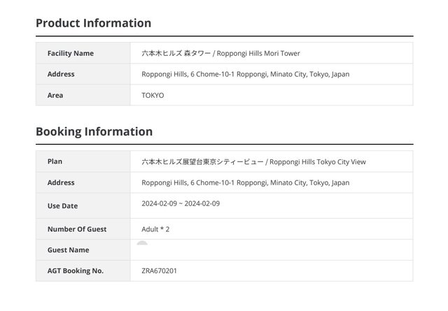 1. 讓售品項:六本木之丘展望台門票 一次兩張