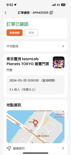 標題[讓售] 3/25 13:00東京豐洲TeamLab Planets TOKY