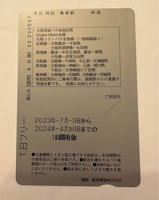 標題[讓售] KTP關西周遊卡3日 大阪周遊卡1日