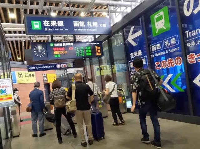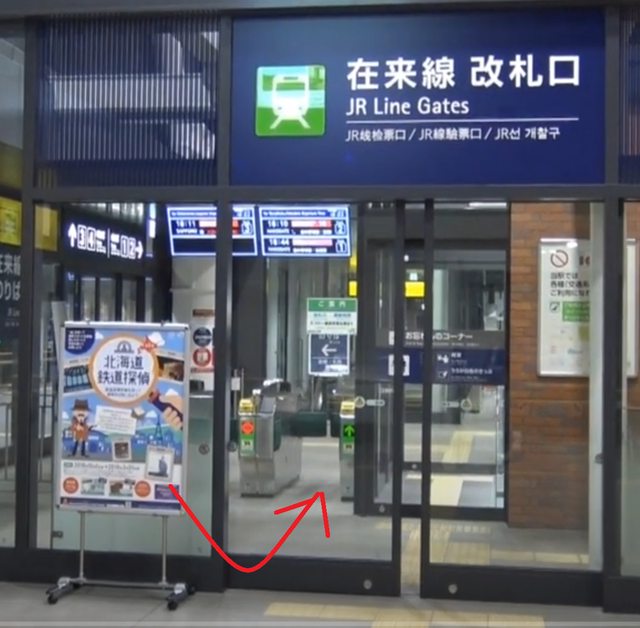 (2)往前走到新函館北斗站站在來線出口,要將名古屋-小樽乘車券插入札口出站,