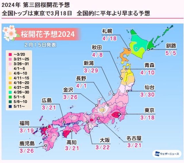 推 Throwout : 去年東京3/14開花 ,3/24滿開 02/15 17:35
