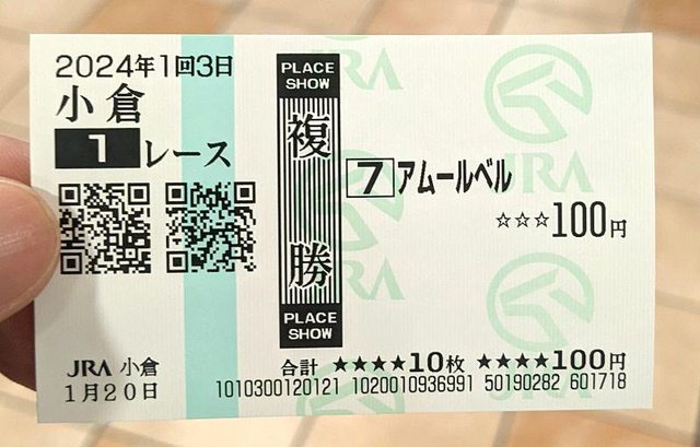 下注小倉第一場比賽複勝1百円