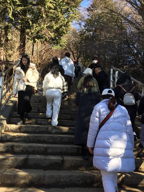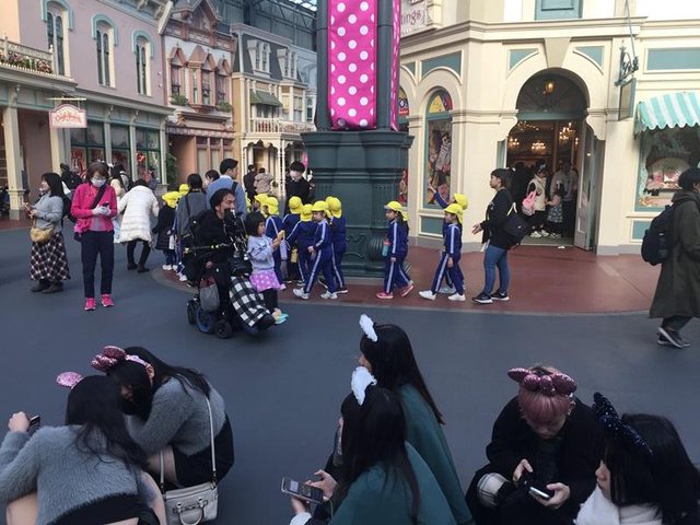 這難道是修業旅行的高中生嗎!?入園後看到許多人在排隊等著拍照。