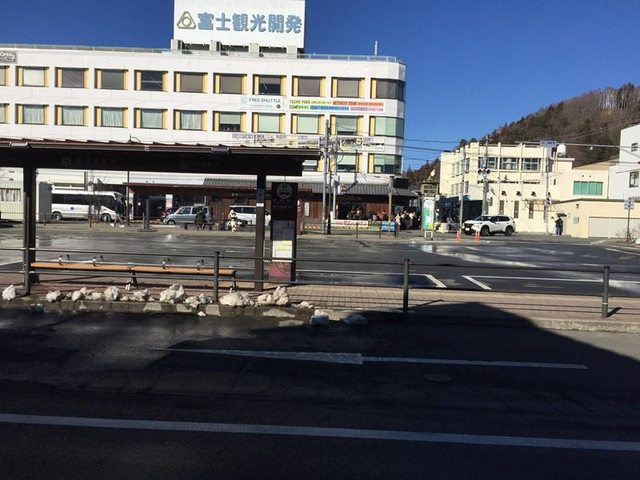 吃完午餐就到巴士站牌排隊,邊看對面ほうとう不動的排隊人潮。