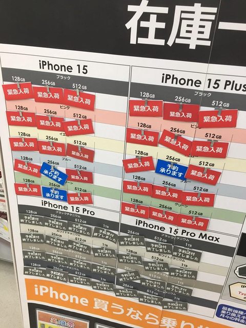 在bic camera買完電器跟急用的沙龍巴斯,順便看一下賣完的iphone15~