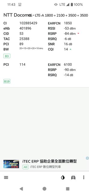 而且很多地方速度測出來都蠻漂亮(手機支援Docomo的5CA)