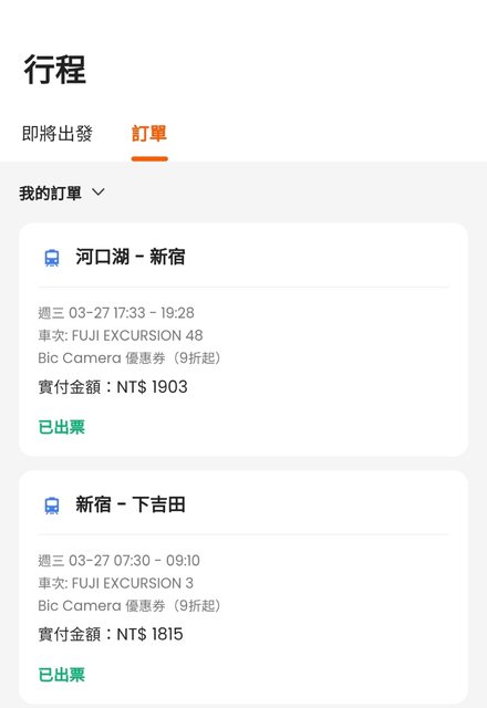 1. 讓售品項:3/27 富士回遊車票雙人往返共4張