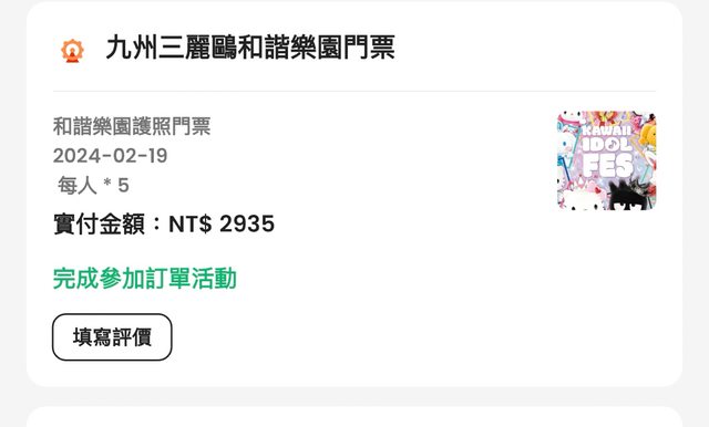 標題[讓售] 九州三麗鷗樂園門票