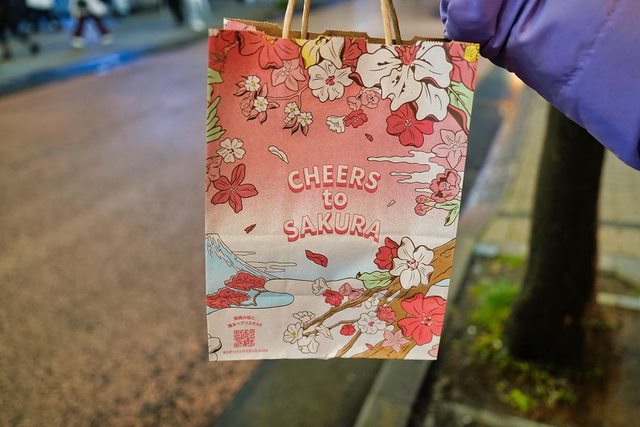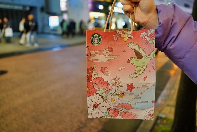 回程在星巴克買了杯子 袋子是櫻花圖案